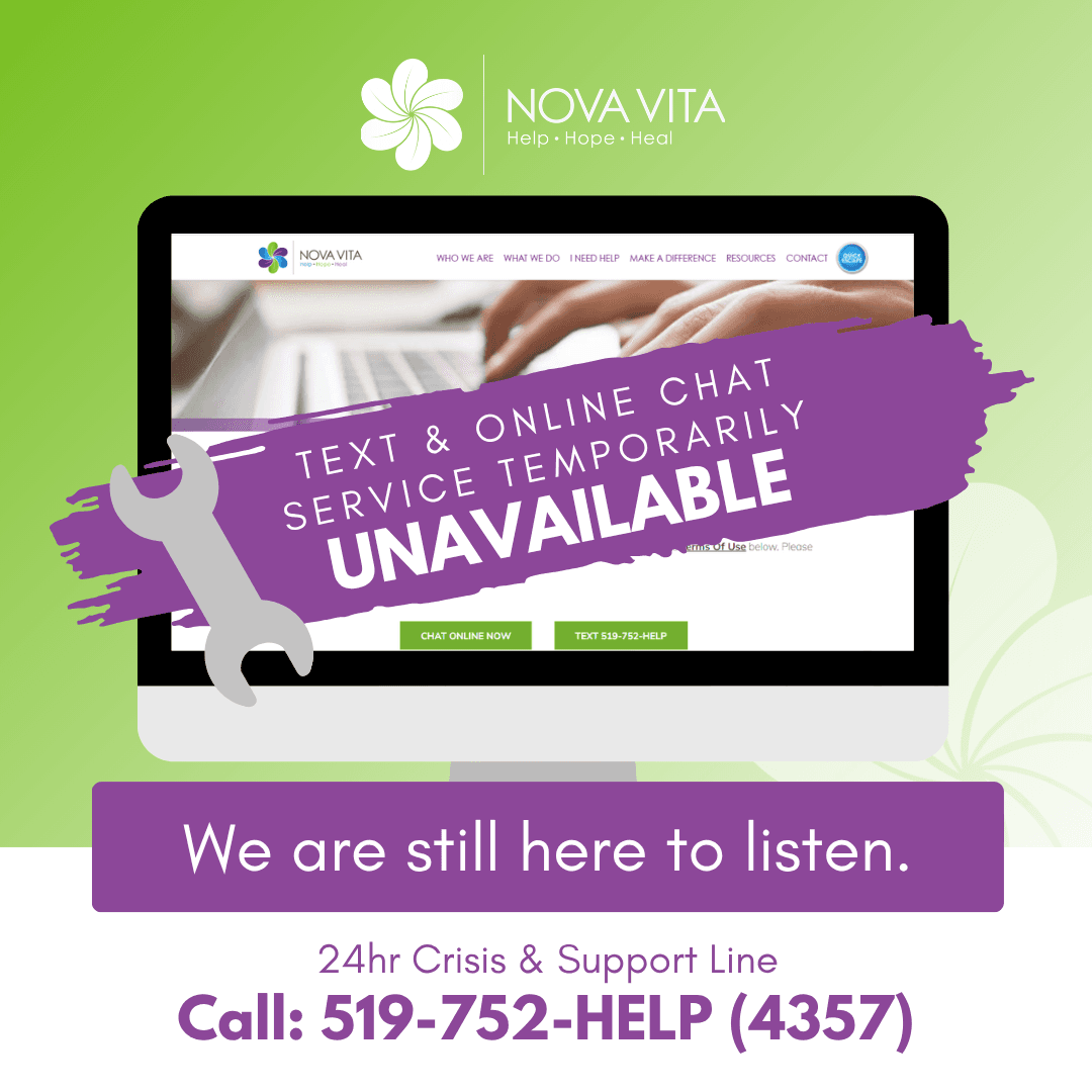 Nova Vita's 24 hour Crisis & Support text and online [...]